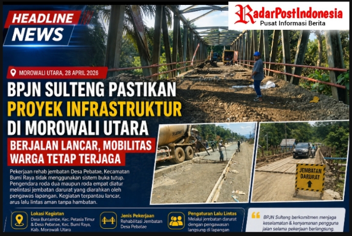 Morowali -radapostindonesia, Balai Pelaksanaan Jalan Nasional (BPJN) Sulawesi Tengah terus menunjukkan komitmennya dalam menjaga konektivitas wilayah melalui berbagai pekerjaan infrastruktur strategis seperti Pekerjaan rehab jembatan di desa pebatae kecamatan bumi raya kabupaten morowali.