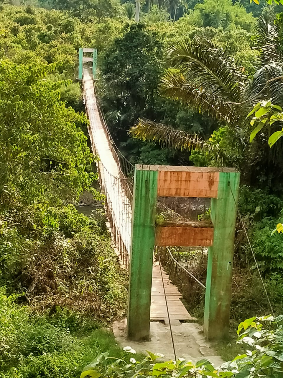 Sejumlah papan kayu yang mulai rapuh serta tali penyangga yang terlihat melemah menambah kekhawatiran masyarakat. Meski demikian, jembatan tersebut tetap digunakan setiap hari oleh warga untuk beraktivitas, termasuk mengangkut hasil kebun dan kebutuhan sehari-hari.