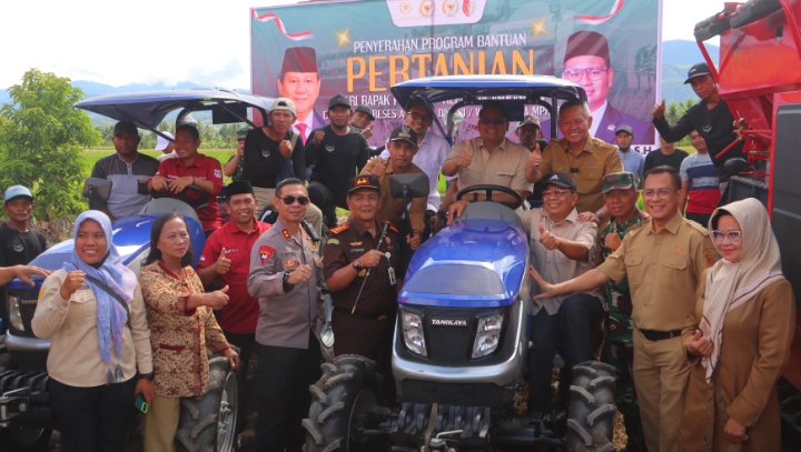 Dalam kesempatan itu, pemerintah menyerahkan bantuan berupa dua unit traktor roda empat (jonder) dan satu unit combine harvester kepada tiga kelompok tani di Desa Sidondo IV, Kecamatan Sigi Biromaru.
