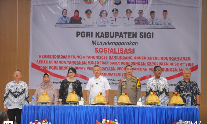 Radar post indonesia-Sigi- Dalam rangka memperkuat perlindungan hukum bagi guru dan anak, Kapolres Sigi AKBP Kari Amsah Ritonga, S.H., S.I.K., M.H. secara resmi menandatangani Nota Kesepahaman (MoU) kerja sama Polres Sigi dengan PGRI Kabupaten Sigi dan Dinas Pemberdayaan Perempuan dan Perlindungan Anak (DP3A) Kabupaten Sigi, Sabtu (7/2/2026), di Gedung Kesenian RTH Taiganja, Desa Kalukubula, Kecamatan Sigi Biromaru.
